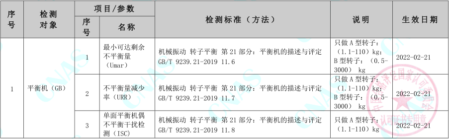 上海劍平動平衡機CNAS實驗室認可證書
